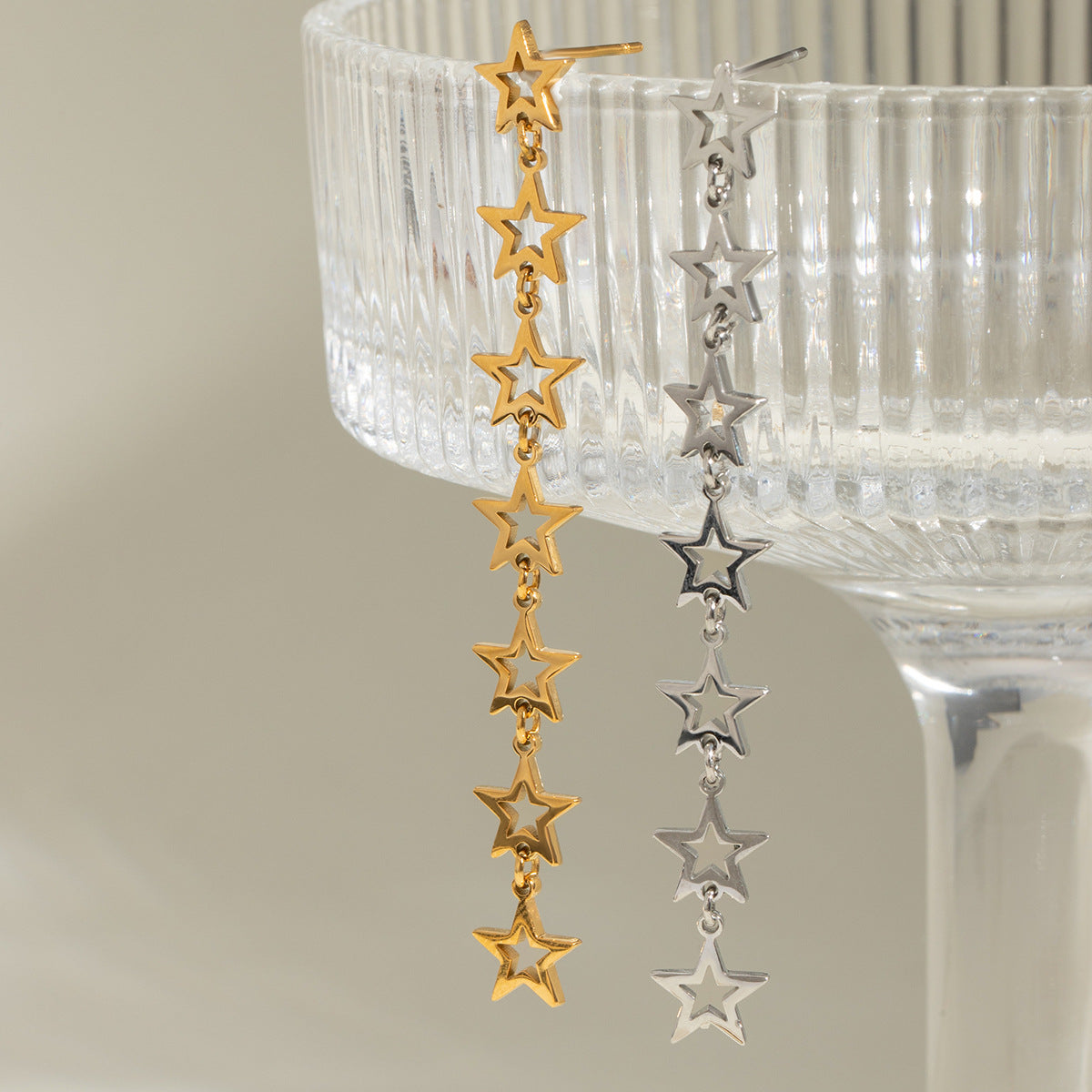 - Delicate star charms with dangle design